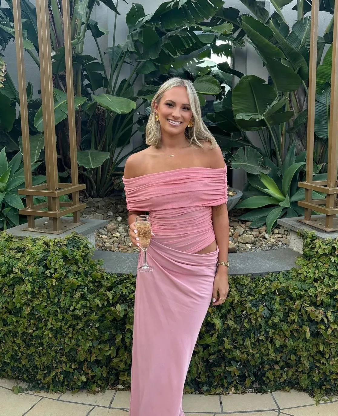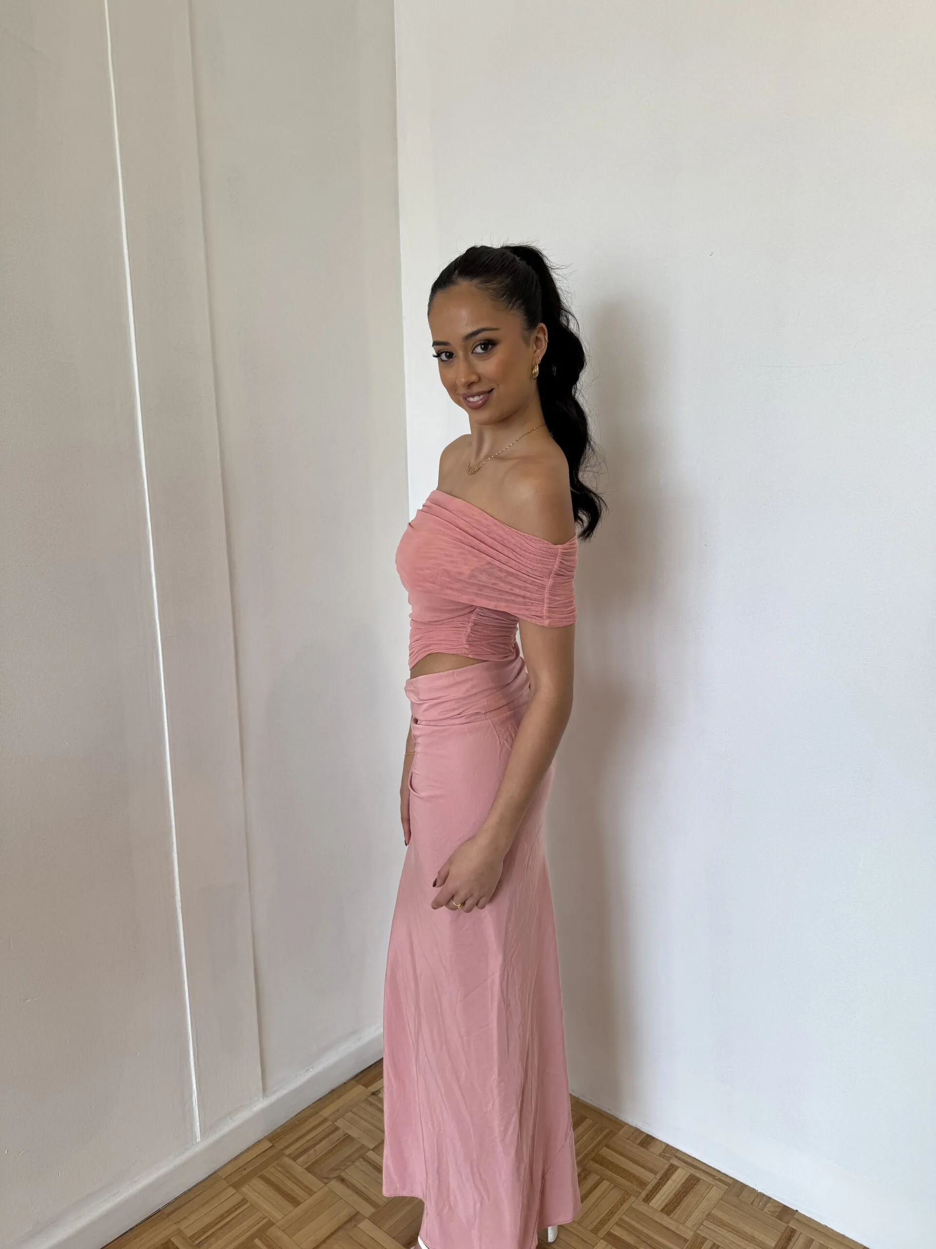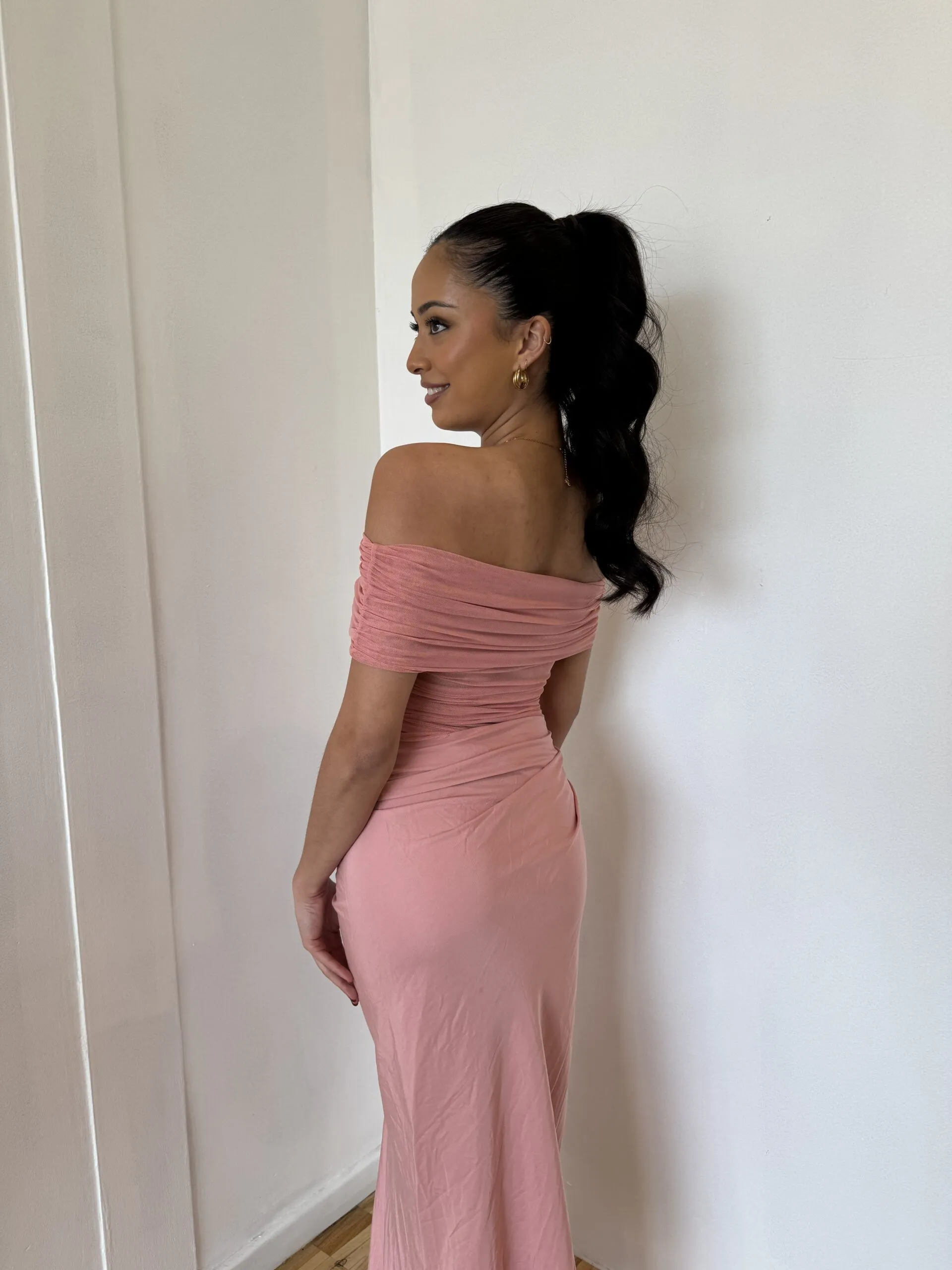 Benni - Nico Off Shoulder Maxi Dress in PINK