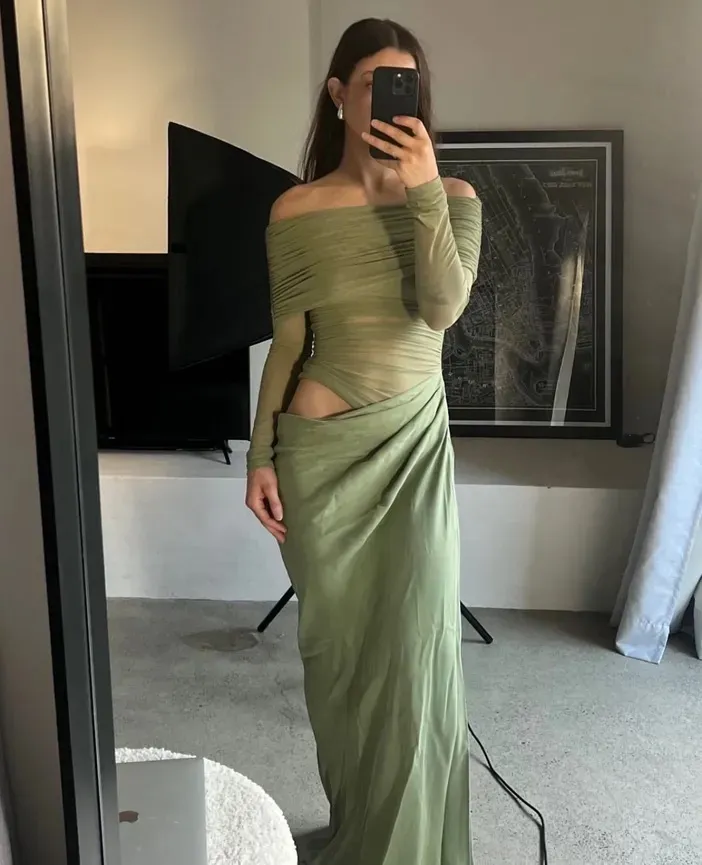 BENNI - Yasmin Off Shoulder Maxi Dress in OLIVE